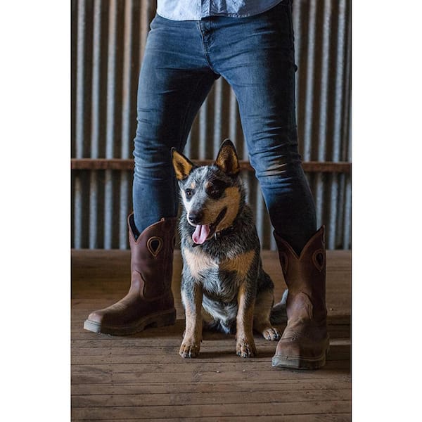 Men's Blue Heeler Square Toe Wellington 10 in. Work Boots - Steel Toe - Oak Size 13(W)