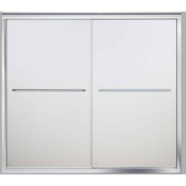 Finesse 55-60 in. x 56 in. Semi-Frameless Sliding Tub Door in Frosted Silver with Handle