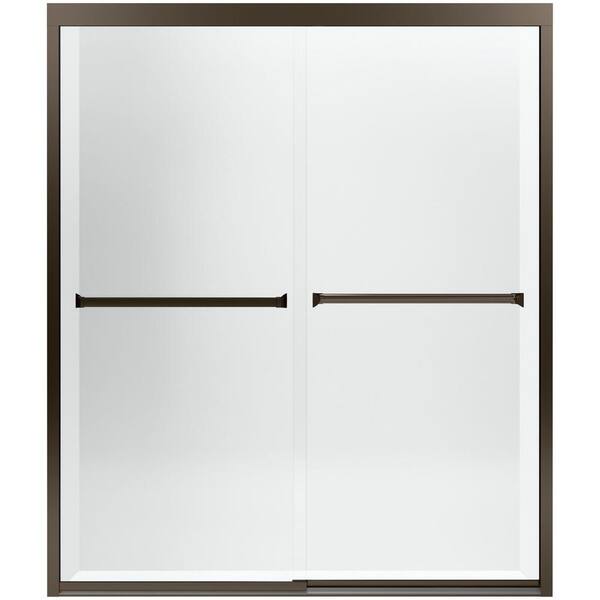 Meritor 59.375 in. W x 70 in in. H Semi Frameless Sliding Shower Door in Anodized Deep Bronze with Clear Glass