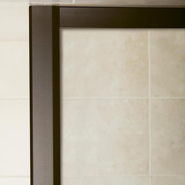 Meritor 59.375 in. W x 70 in in. H Semi Frameless Sliding Shower Door in Anodized Deep Bronze with Frosted Glass