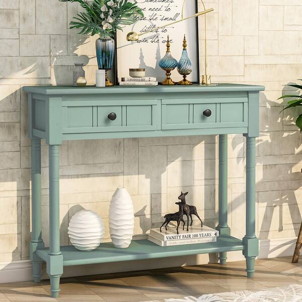 35.5 in. Cyan Standard Rectangle Wood Console Table with 2-Drawers