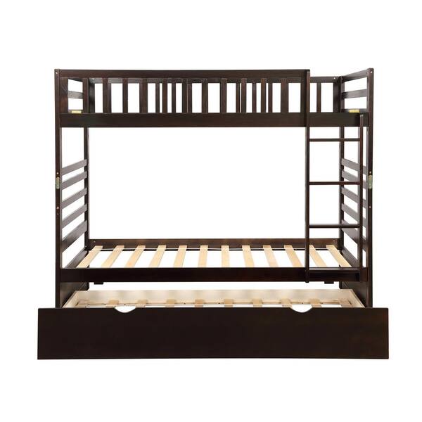 Espresso Twin Bunk Beds with Movable Trundle Bed