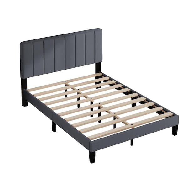 Gray Full Size Upholstered Panel Bed Frame with Headboard