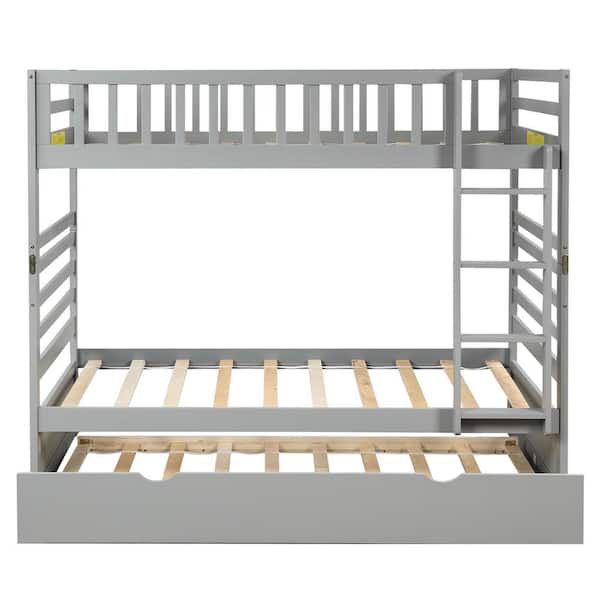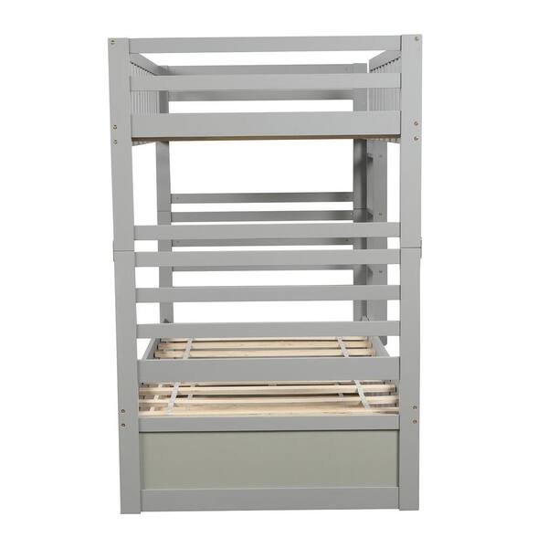 Gray Twin Bunk Beds with Movable Trundle Bed