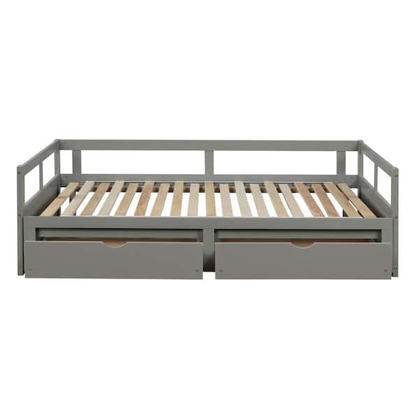 Gray Twin Size Daybed with Trundle Bed and 2-Drawers