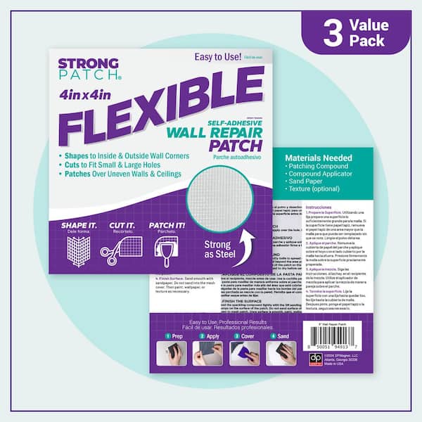 StrongPatch 4 in. x 4 in. Flexible Self Adhesive Wall Repair Patch (3-Pack)