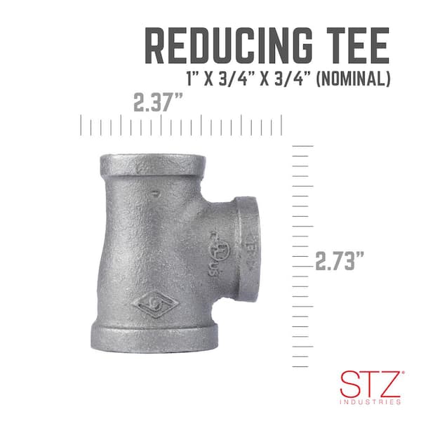 1 in. x 3/4 in. x 3/4 in. Black Iron Reducing Tee