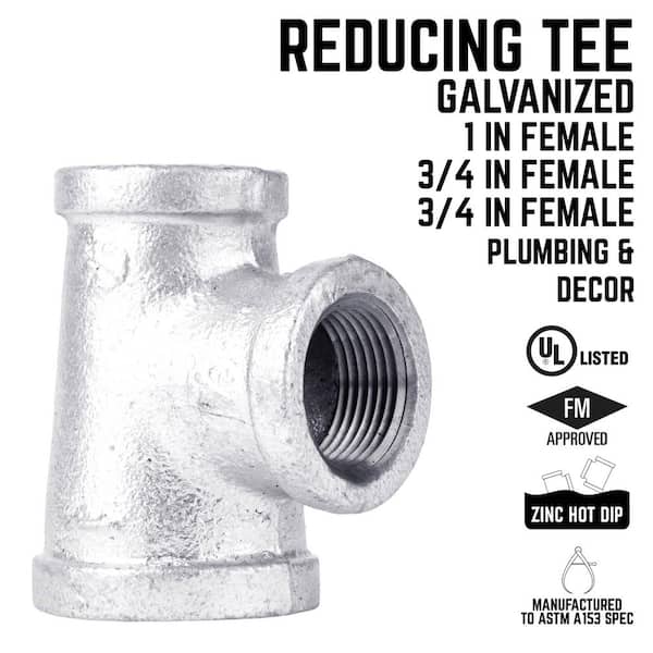 1 in. x 3/4 in. x 3/4 in. Galvanized Iron Reducing Tee Fitting