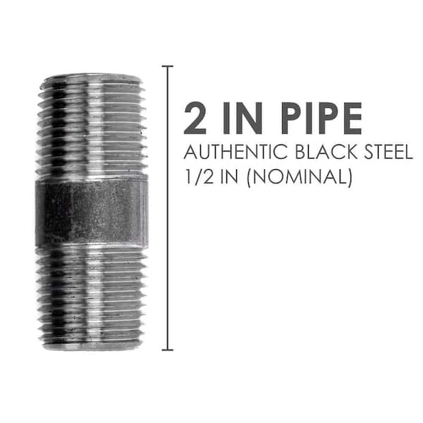 Pipe Decor 1/2 in. x 2 in. Black Steel Pipe Connector (2-Pack)
