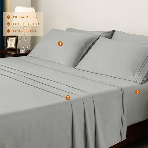 4-Piece Light Gray Solid Tencel Queen Sheet Set, Breathable and Cooling