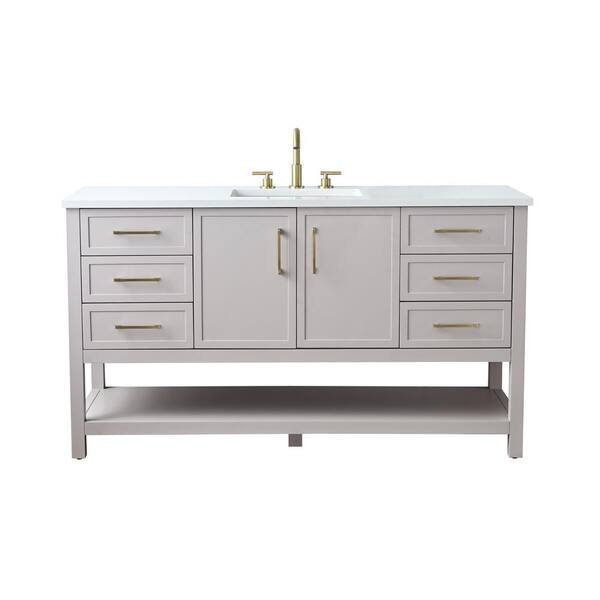 Arlo 60 in. W x 22 in. D x 34 in. H Bath Vanity in Taupe with Engineered Stone Top in Ariston White with White Sink
