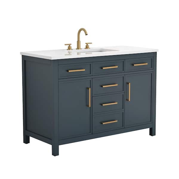 Cooper 48 in. W Bath Vanity in Vintage Blue with Engineered Stone Top in Ariston White with White Sink