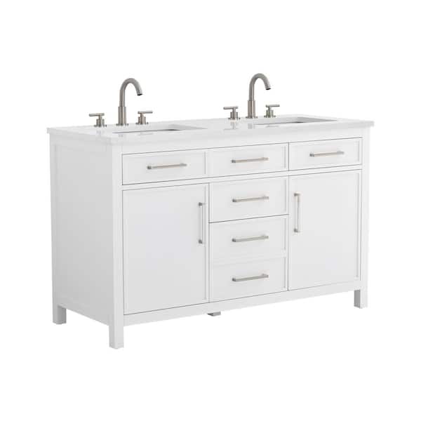 Cooper 54 in. W Bath Vanity in White with Engineered Stone Top in Ariston White with White Sinks