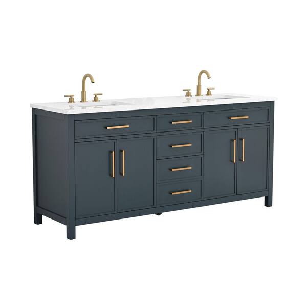 Cooper 72 in. W Bath Vanity in Vintage Blue with Engineered Stone Top in Ariston White with White Sinks