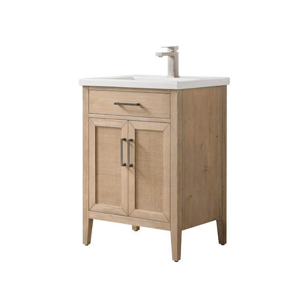 Cove 24 in. W Bath Vanity in Coastal Sand with Ceramic Vanity Top in White with White Sink