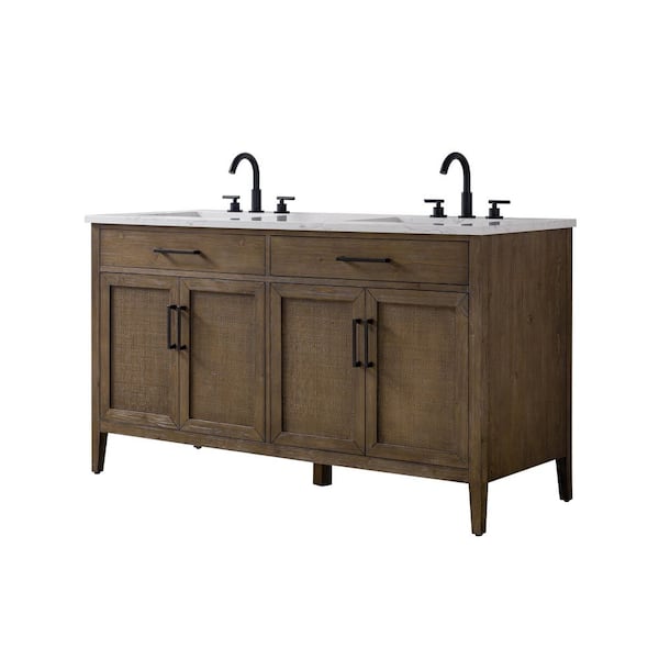 Cove 60 in. W Bath Vanity in Antique Brown with Engineered Stone Top in Carrara White with White Sinks