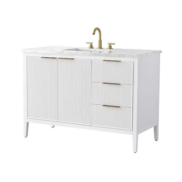 Emma 48 in. W Bath Vanity in White with Engineered Stone Top in Arabescato with White Sink
