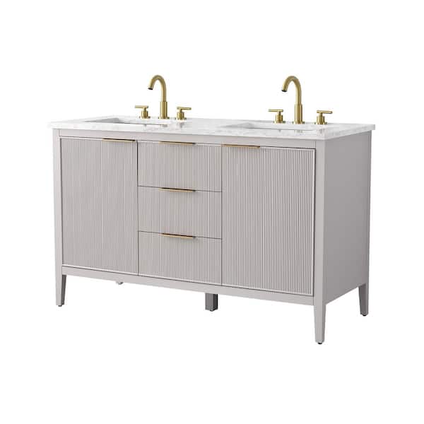 Emma 54 in. W Bath Vanity in Taupe with Engineered Stone Top in Arabescato with White Sinks