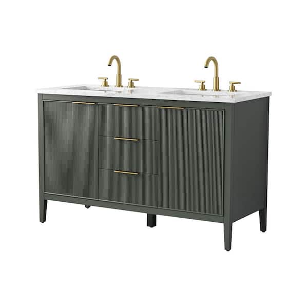 Emma 54 in. W Bath Vanity in Vintage Green with Engineered Stone Top in Arabescato with White Sinks