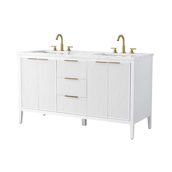 Emma 60 in. W Bath Vanity in White with Engineered Stone Top in Arabescato with White Sinks