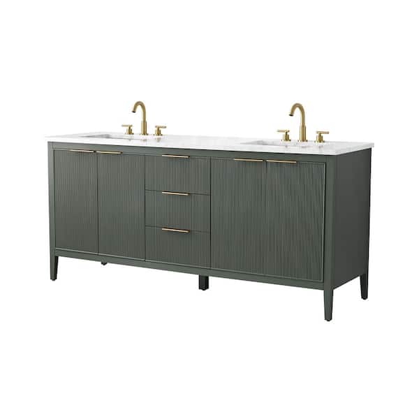 Emma 72 in. W Bath Vanity in Vintage Green with Engineered Stone Top in Arabescato with White Sinks