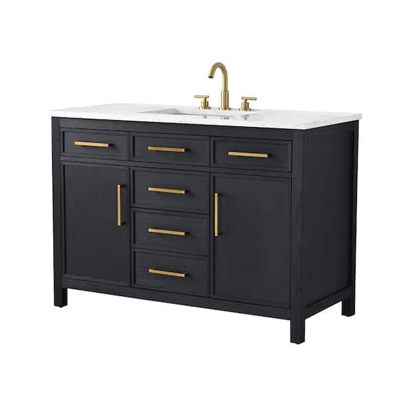 Logan 48 in. W Bath Vanity in Ebony with Engineered Stone Top in Carrara White with White Sink
