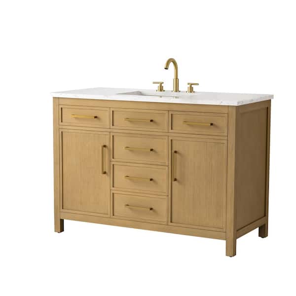 Logan 48 in. W Bath Vanity in Sand with Engineered Stone Top in Carrara White with White Sink