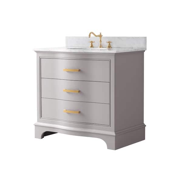 Monroe 36 in. W x 22 in. D Bath Vanity in Taupe with Natural Marble Vanity Top in Carrara White with White Sink