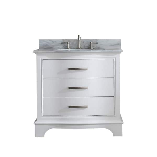 Monroe 36 in. W x 22 in. D Bath Vanity in White with Natural Marble Vanity Top in Carrara White with White Sink