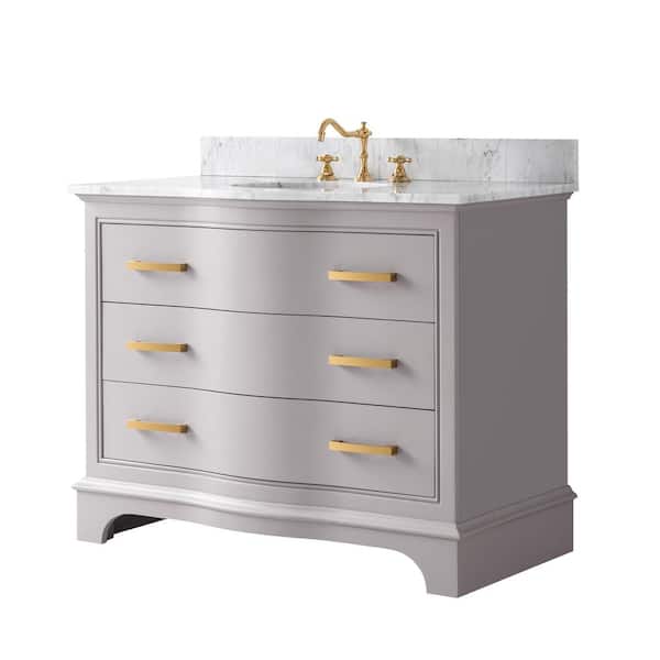 Monroe 42 in. W x 22 in. D Bath Vanity in Taupe with Natural Marble Vanity Top in Carrara White with White Sink