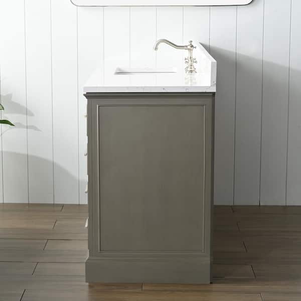Thompson 60 in. W x 22 in. D Bath Vanity in Silver Gray with Engineered Stone Vanity in Carrara White with White Sink