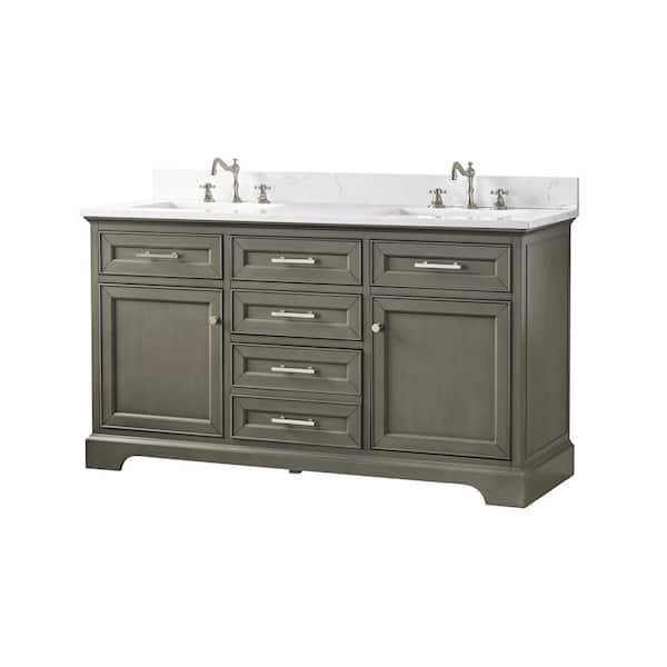 Thompson 60 in. W x 22 in. D Bath Vanity in Silver Gray with Engineered Stone Vanity in Carrara White with White Sinks