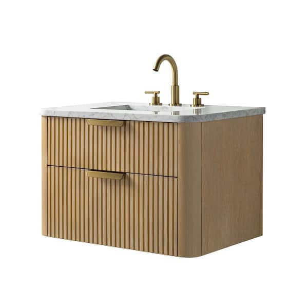 Warren 30 in. W Floating Bath Vanity in Classic Oak with Engineered Stone Top in Arabescato and White Sink