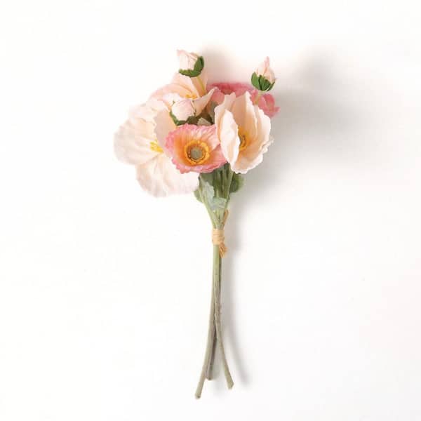 13.75 in. Peachy Pink Indoor Artificial Poppy Flower Bush