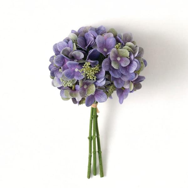 13.75 in. Purple Indoor Artificial Lavender Hydrangea Bush