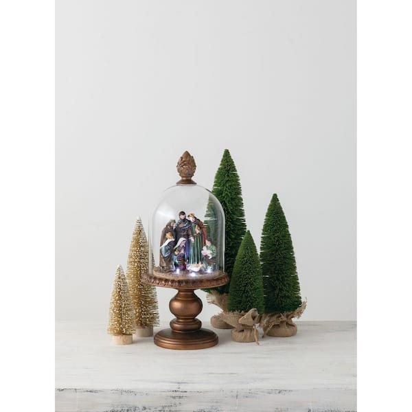 14.5 in. & 9 in. Gold Bottle Brush Tree with Snow - Set of 2