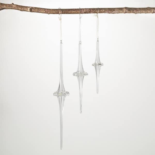 14.75 in. , 9.75 in. and 7.5 in. Glass Icicle Ornament - Set of 3, Clear Christmas Ornaments