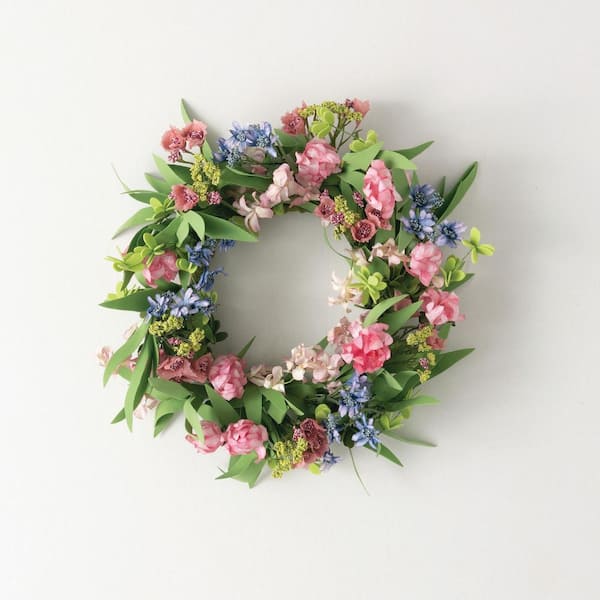 15 in. Artificial Mixed Spring Florals Mini Wreath, Pink