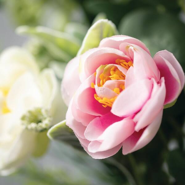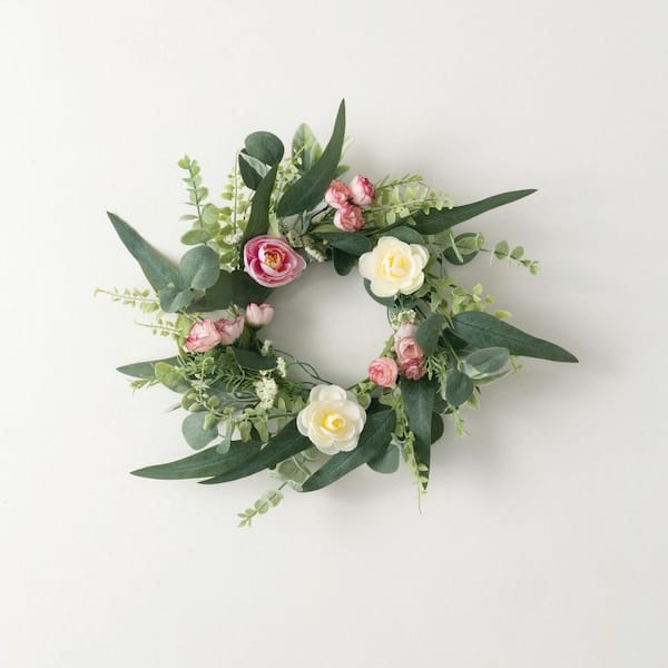 16.5 in. Artificial Ranunculus Mini Blossom Mini Wreath, Pink