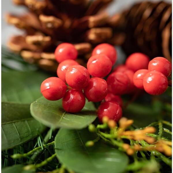 16 in. Unlit Green Rustic Pine and Berry Mini Artificial Christmas Wreath