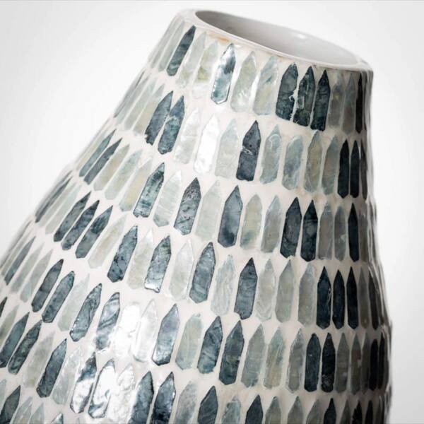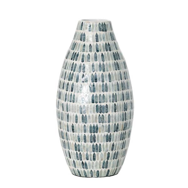 18 in. Tall Blue Bamboo Capiz Cylinder Vase