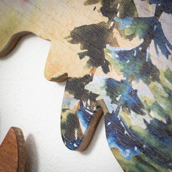 18 in. and 15.75 in. Moose and Wolf Wood Decorative Sign (Set of 2)