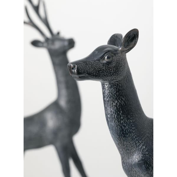 19" and 14" Black Polyresin Holiday Deer Figurine (Set of 2)