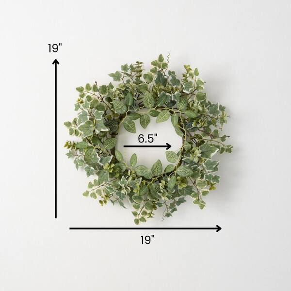 19 in. Artificial Foliage and Botanical Bush Small Wreath, Green