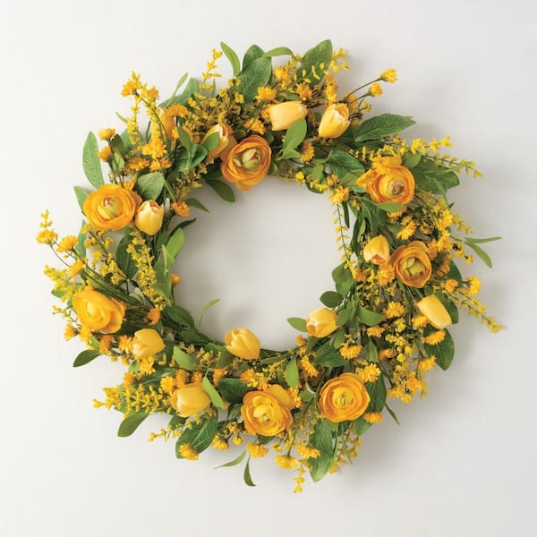 24 in. Artificial Ranunculus Wreath, Yellow