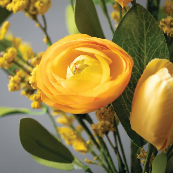• Lifelike ranunculus flowers and greenery add a charming appeal