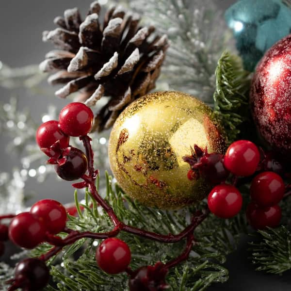 24 in. Shiny Ball Frosted Pine Artificial Christmas Wreath, Multicolor