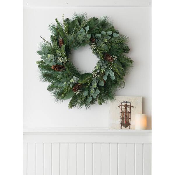 25" Artificial Mixed Pine and Eucalyptus Wreath