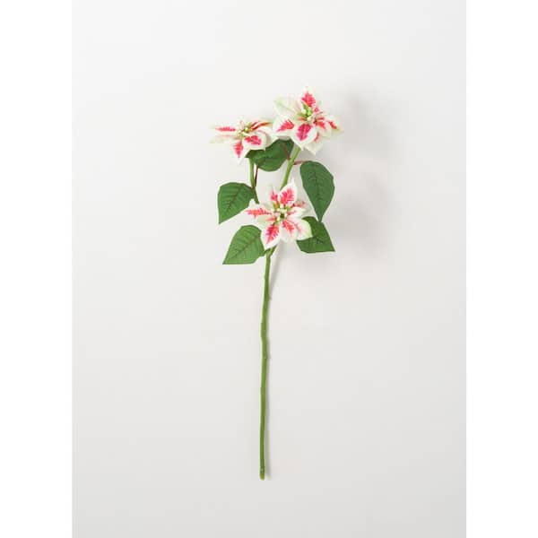 25 in. Artificial Cream and Pink Poinsettia Stem