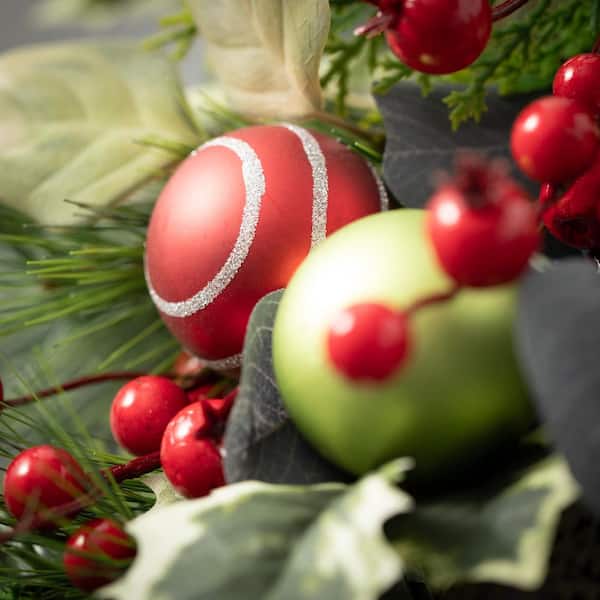 26 in. Shiny Ball Mixed Foliage Artificial Christmas Wreath, Multicolor